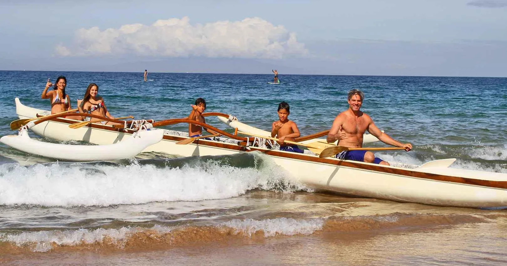 The Hawaiian Outrigger Canoe Snorkel Tour departs from Wailea Beach, Maui, combining canoe paddling with snorkeling in coral-sea gardens. Enjoy views of Haleakala, Molokini, and marine life like turtles and dolphins.