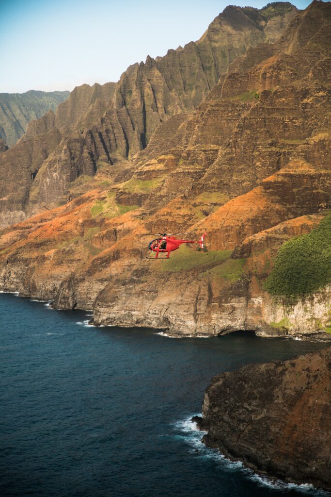 Experience the Majesty of Kauai: Fly over iconic sites like Bali Ha’i, Hanalei Bay, and the remote Kipu Kai Beach. Witness the awe-inspiring beauty of Nā Pali Coast and the lush greenery of Waialeale Crater. From cascading waterfalls to towering emerald mountains, this tour offers a mesmerizing perspective of Kauai’s natural wonders.