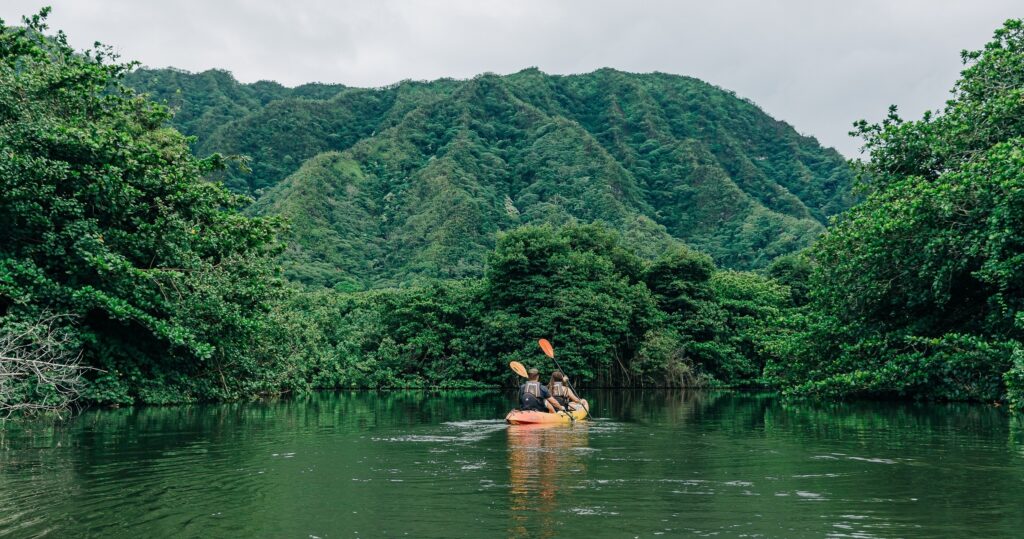 Embark on a captivating river kayaking experience in the lush Kahana Valley. Suitable for all ages, this adventure offers a serene journey through a rainforest river surrounded by majestic mountains. Our team will meet you at 134B Hamakua Dr. Kailua HI, 96734 with all the necessary equipment. You’ll transport the kayak to the launch location using pads and straps provided. Once in the valley, explore hiking trails and rope swings amidst the captivating scenery. Be sure to wear sunscreen and bring your swimwear for a refreshing dip in the river.