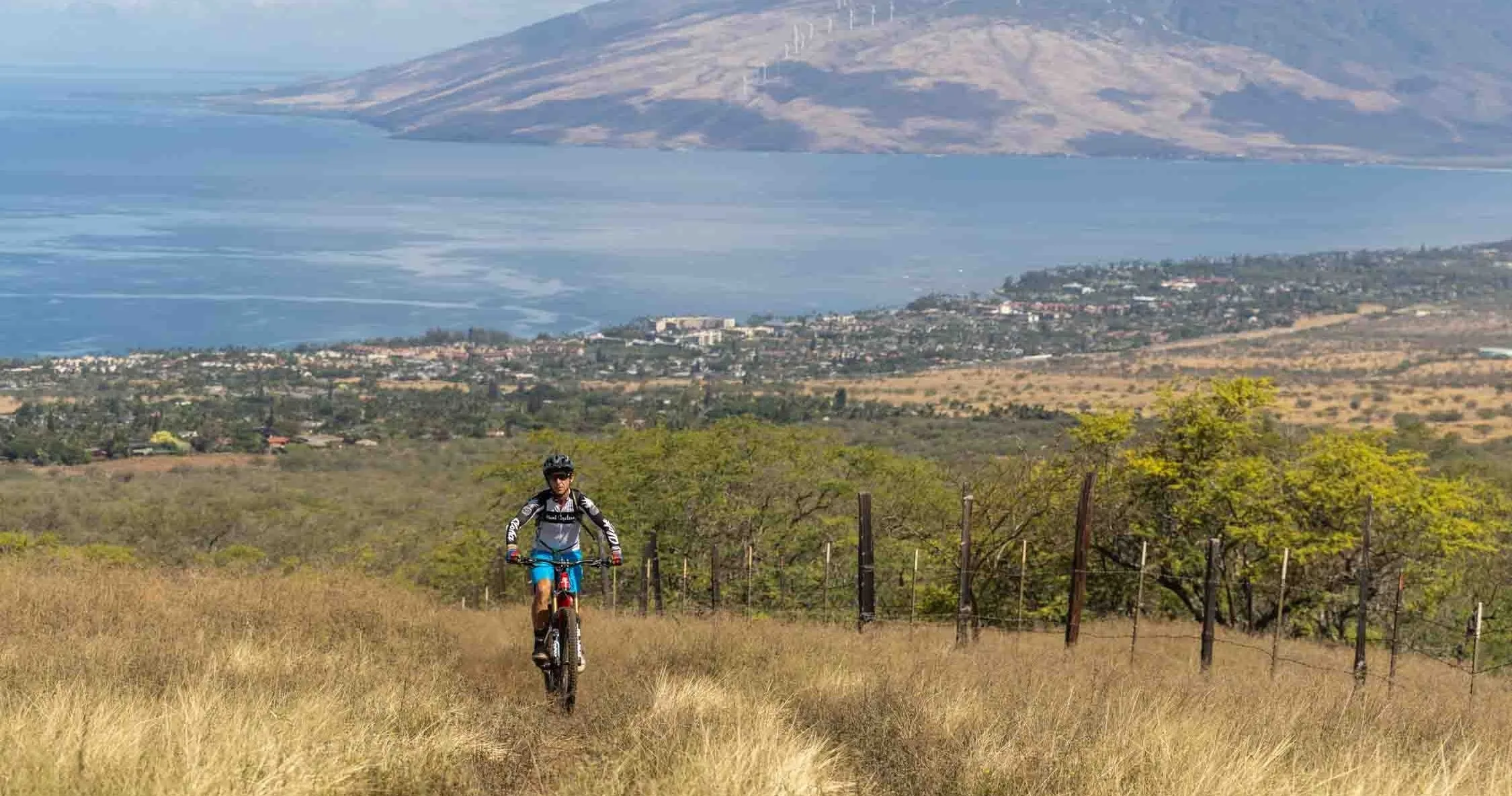 Explore exclusive advanced sections of a Maui ranch on this 2.5-hour guided e-mountain bike tour. The ride features challenging climbs, thrilling descents, and a mix of technical singletrack, flowing dirt paths, and rugged off-road terrain.