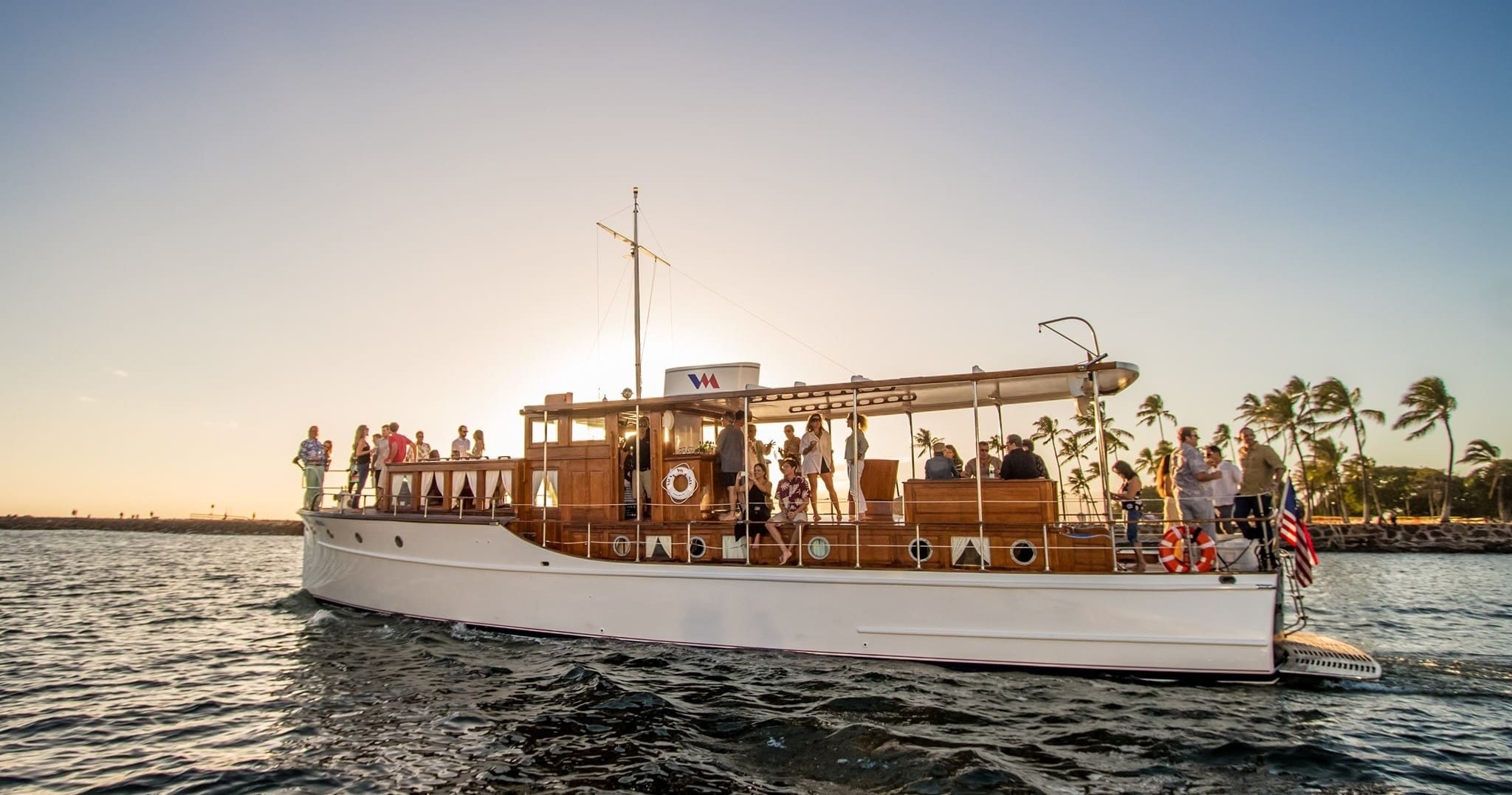 Experience the magic of a Hawaiian sunset aboard the Vida Mia. Treat your guests to an unforgettable evening filled with stunning views, delicious food, and premium beverages. Reserve your private charter today for a memorable sunset cruise in Honolulu.